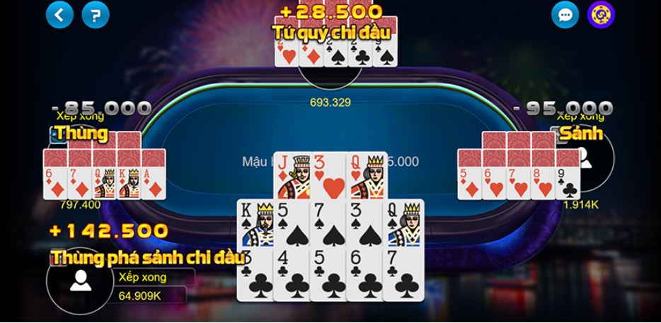 - Bước 4: Cuối cùng, người chơi sẽ so sánh, tính tiền hết cả 3 chi trong mậu binh 789Club.