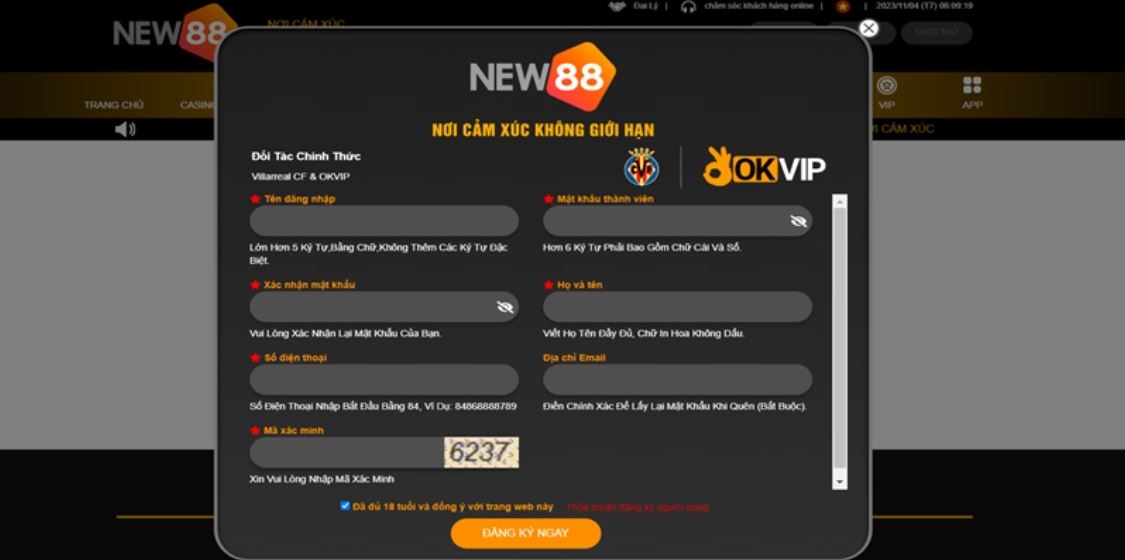 Điền phiếu đăng ký NEW88