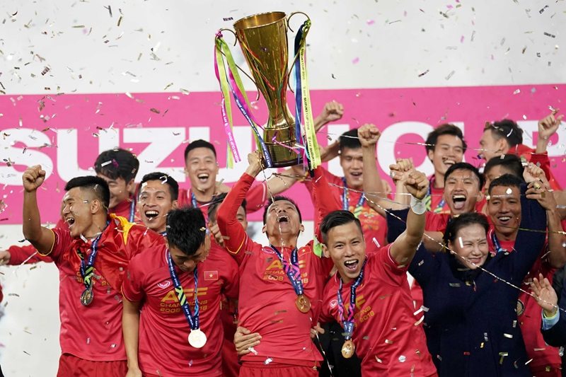 Quế Ngọc Hải và đồng đội ăn mừng chiến thắng AFF Cup 2018