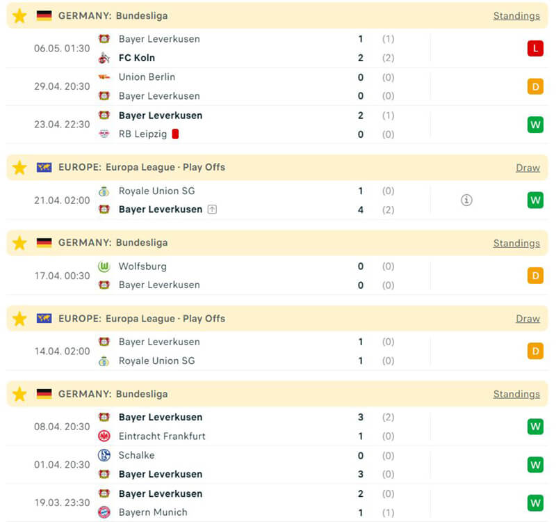 Ở chiều ngược lại, đội khách Bayer Leverkusen lại đang có phong độ thi đấu vô cùng thất thường. Trong 6 trận đấu đây nhất thì đội bóng này mới chỉ có được 2 chiến thắng và thua kèo châu Á đến 4 lần. Không chỉ vậy, 2/3 trận đấu trên sân khách gần đây đoàn quân của HLV Alonso tịt ngòi.
