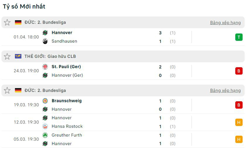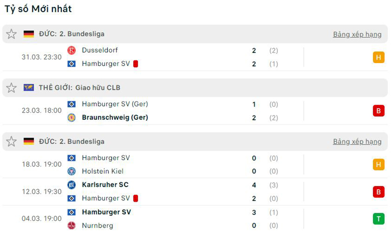 Phong độ thi đấu giữa Hamburger vs Hannover
