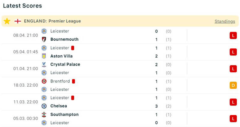 Phía bên kia chiến tuyến, đội khách Leicester City lại đang tụt dốc không phanh trên bảng xếp hạng. Trong 9 trận đấu gần đây nhất thì đội bóng này đã phải nhận đến 8 trận thua, trong có có cả những trận thu vô cùng bạc nhược trước đội bóng yếu hơn.