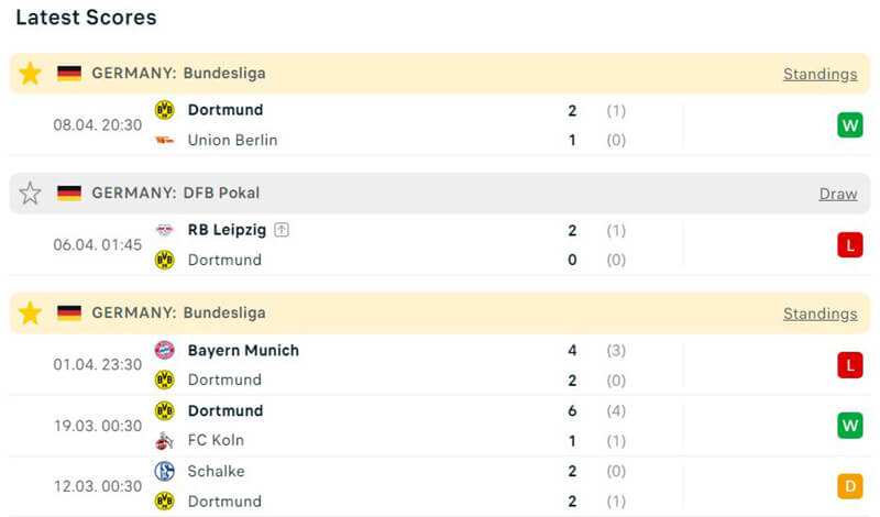 Phía bên kia chiến tuyến, đội khách Dortmund vẫn đang giữ được phong độ ổn định khi họ chỉ thua duy nhất đội đầu bảng là Bayern Munich trong 3 trận gần đây nhất. Nên việc đội khách sẽ ra về với 3 điểm là hoàn toàn bình thường.