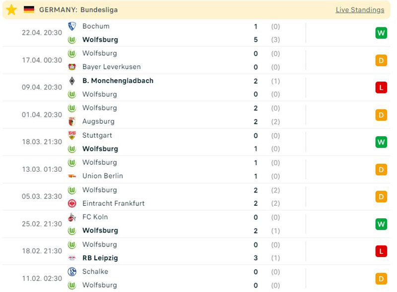 Đội chủ nhà Wolfsburg đang có dấu hiệu chững lại. Trong 7 trận đấu gần đây nhất đội chủ nhà mới chỉ có được 2 chiến thắng và thua kèo châu Á đến 5 lần. Nếu không cải thiện phong độ thì Wolfsburg rất có thể sẽ bị tụt sâu nữa trên BXH.